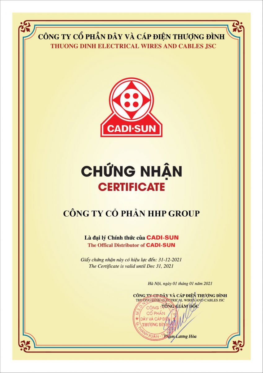 Chúng tôi, daycapdien.net tự hào là đại lý cấp 1 phân phối dây cáp điện cadisun chính hãng giá rẻ, chiết khấu cao. Hàng hóa chính hãng đầy đủ chứng chỉ, phiếu xuất xưởng, biên bản thử nghiệm dây cáp.